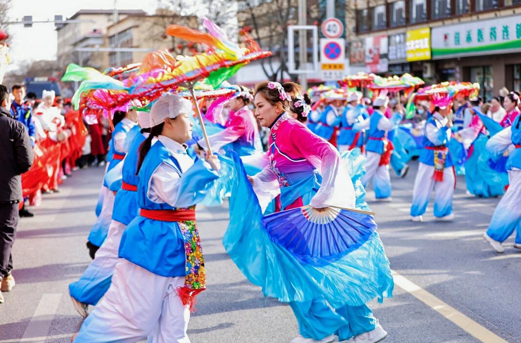 下午4时,城关镇社火巡游队伍从南门桥头出发,沿街道向玉皇阁主会场行进,成为串联全城的流动风景线。铿锵锣鼓震天响,欢腾舞龙、俏皮旱船、喜庆秧歌依次亮相,演员们精神抖擞、动作娴熟,所到之处人潮涌动,掌声、欢呼声此起彼伏,将节日氛围不断推向高潮。