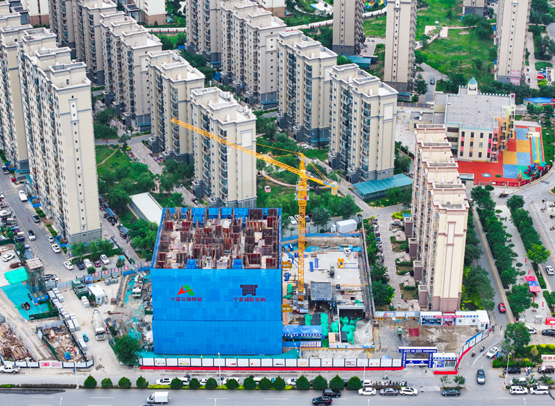 7月6日,银川市重点民生工程——金凤区高桥家园保障性租赁住房项目主体结构施工加速推进。该项目总建筑面积24385平方米,整体工程计划于2026年9月30日前竣工,届时将为银川市中低收入群体提供包含精装公寓、地下车库及完善社区配套的现代化居住空间。记者 马楠 摄