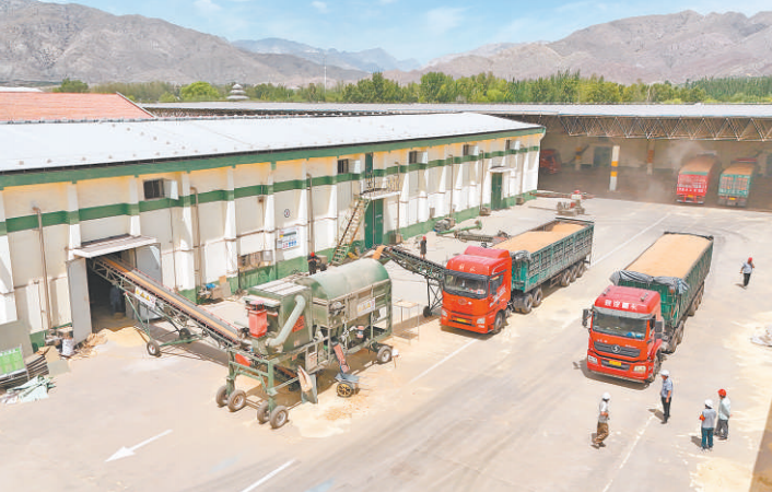 粮食经转运后开始入库。