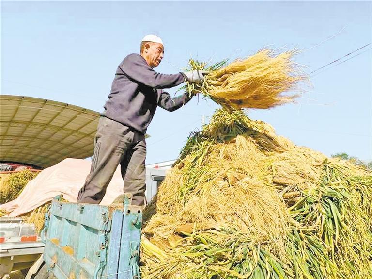 11月1日,海原县海城镇山门村的田野里弥漫着独特的辛香。在村民高风中的30亩地里,村民们忙着采挖、分拣、捆扎当地的特产——山门红葱。