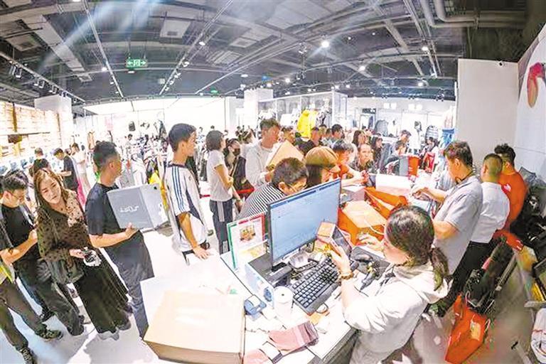 “双节”期间,砂之船(银川)奥莱消费者排队结账。