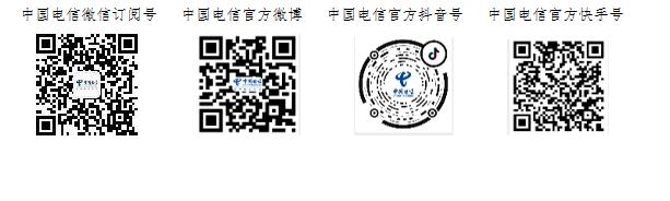 获取更多信息,请访问中国电信官方网站www.chinatelecom.com.cn或者关注“@中国电信”微信订阅号、官方微博、抖音和快手账号。