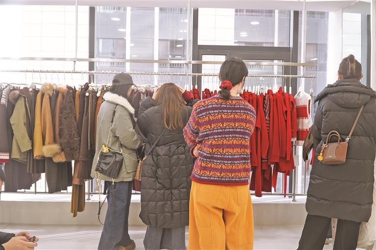 “我是朋友推荐来的,网上看过她们家直播,今天试穿果然没失望!”正在挑选毛衣的顾客王女士说。