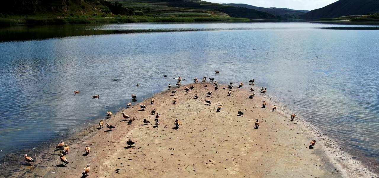 深秋时分,党家岔堰塞湖旁高高的山峁上北风凛冽,西吉县党家岔湿地自然保护区管理人员马世学站在上面远眺,党家岔的水面像一面巨大的镜子,将上空的乌云和飞鸟全部“装”了进去。