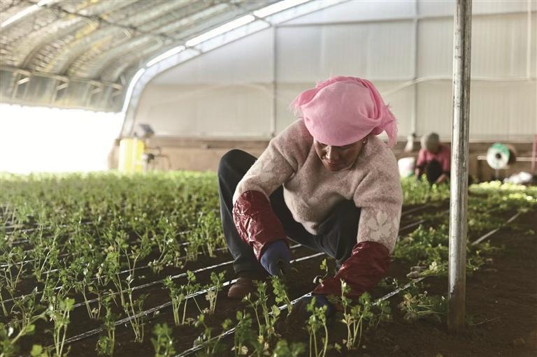 1月3日,泾源县兴盛乡兴盛村蔬菜大棚里,务工人员正在种植芹菜。兴盛村建有蔬菜大棚33栋,主要种植芹菜。每栋棚种植芹菜1.2万株,预计产量近8吨。首批芹菜计划春节前上市,销往甘肃、河南、陕西等地。记者 任悦儿 赵昱杰 摄