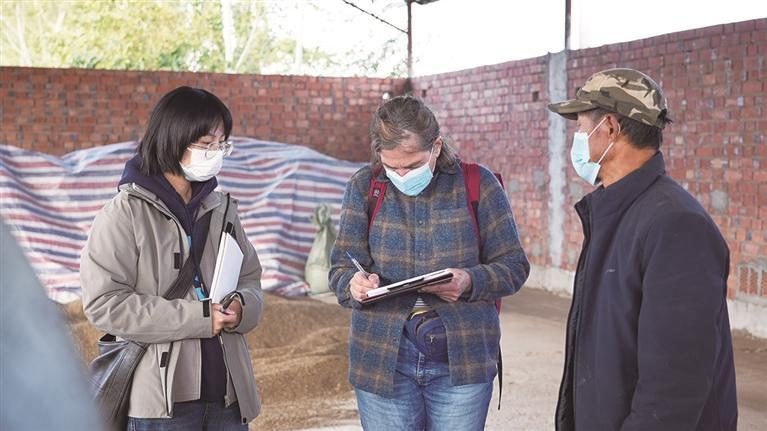 来自欧盟的技术员(中)记录小茴香相关数据。