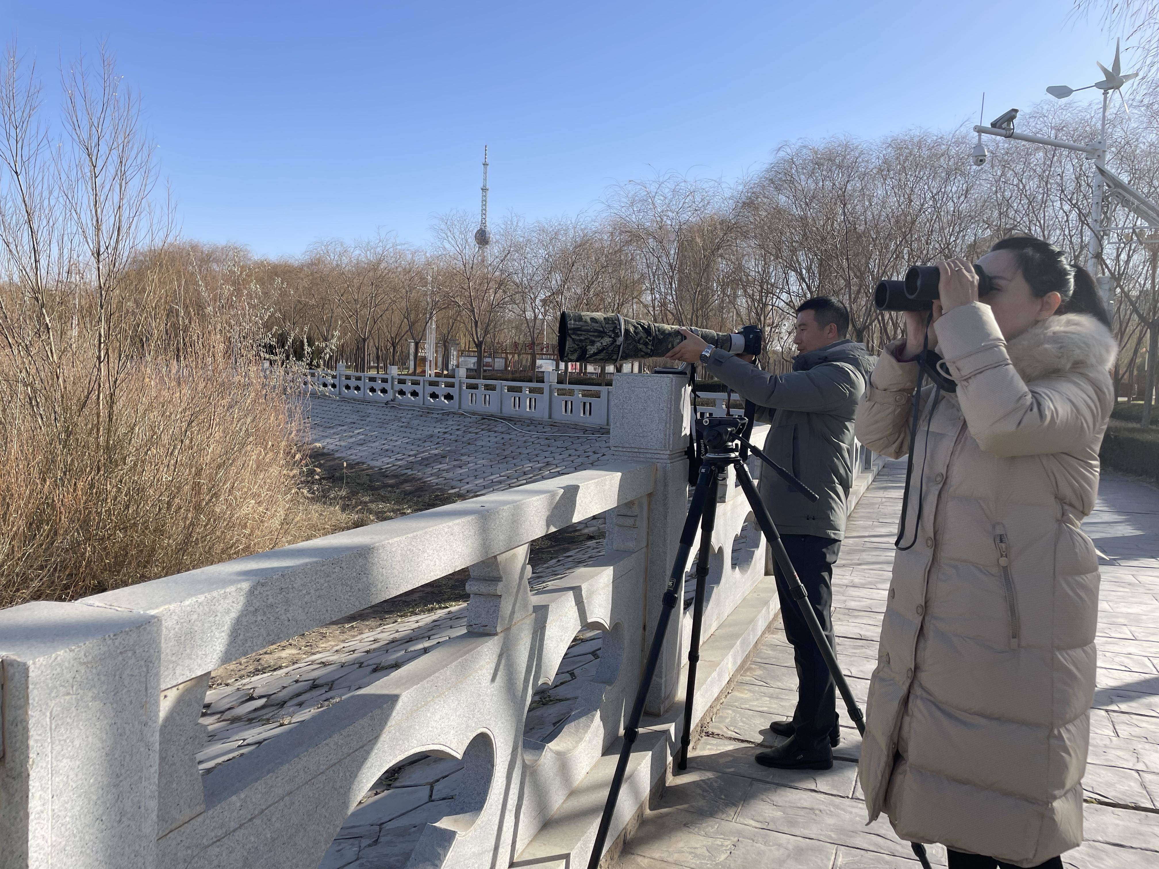 工作人员观察记录鸟类的数量、种类、点位及人为干扰因素,为野生鸟类保护提供一个不断更新的数据库。