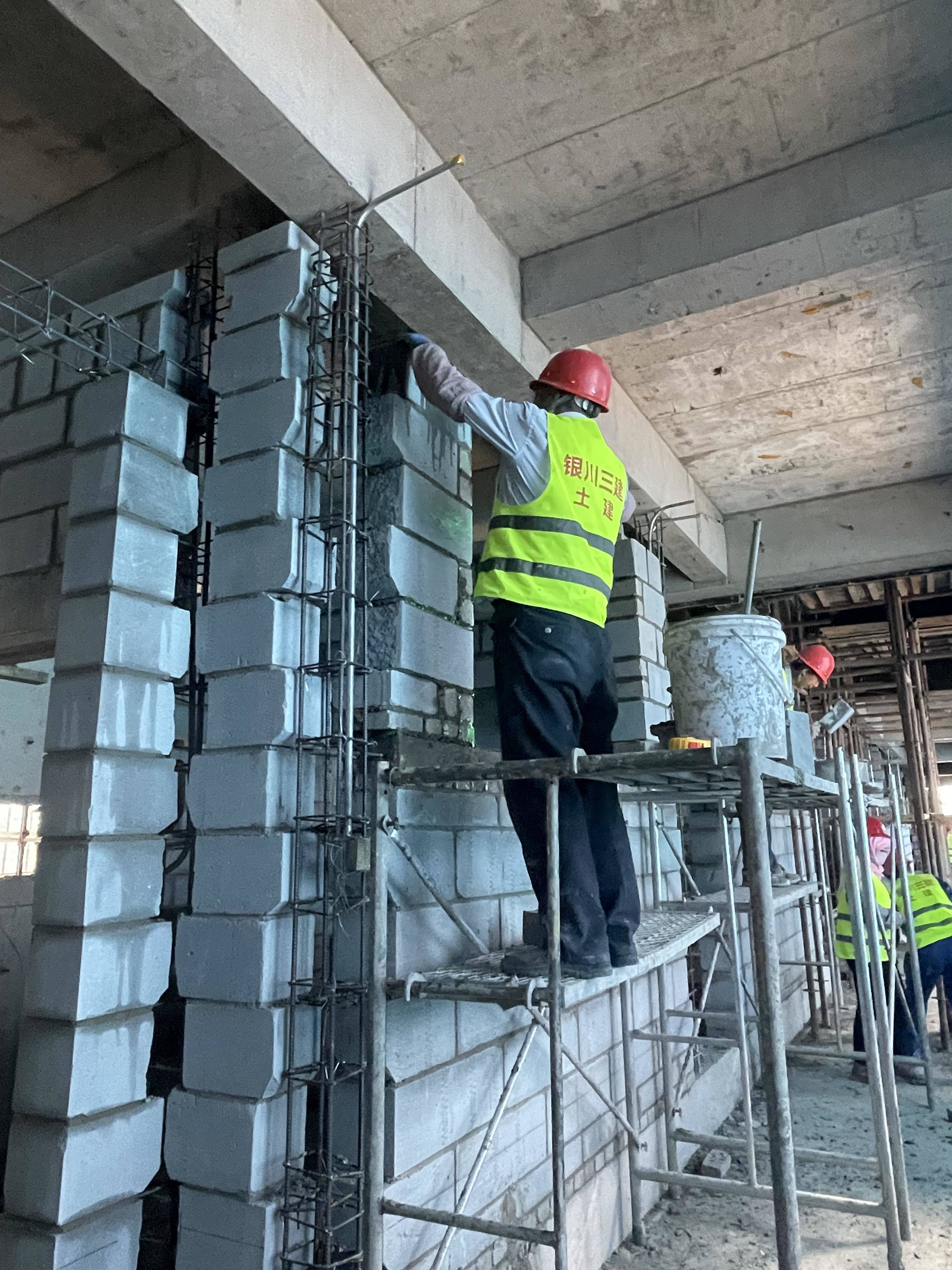 青铜峡市第八幼儿园建设项目总建筑面积6093平方米,设置18个教学班。目前模板支设、钢筋绑扎和混凝土浇筑等主体建设工程已经如期完成,楼内填充墙砌筑、屋面清理及材料打包也在如火如荼地进行着。