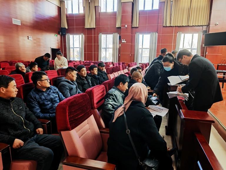 近日,74户玉米减产的农户在盐池县人民法院领取赔偿款。受访单位供图
