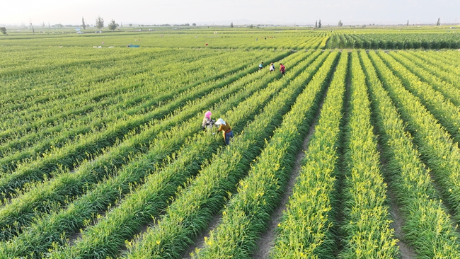 与此同时,黄花产业也展现出蓬勃生机。盐池县组织实施了第八批国家农业综合标准化示范区、第十批(黄花)绿色生产标准化示范区等项目,制定了涵盖全产业链的106项标准规范,初步建立起种植与加工相结合的标准化生产体系。目前,全县黄花菜种植面积达4.2万亩,产量4.95万吨,共培育黄花菜种植、加工和销售企业及合作社42家,注册商标31个,产品销往全国30个省市,带动3000多户农户发展黄花产业,户均收入5万元以上。“我们现在的产品主要发往北京、天津、广西等地,合作社年营收超20多万元。”盐池县仲昌黄花种植专业合作社负责人刘彦伟说道。