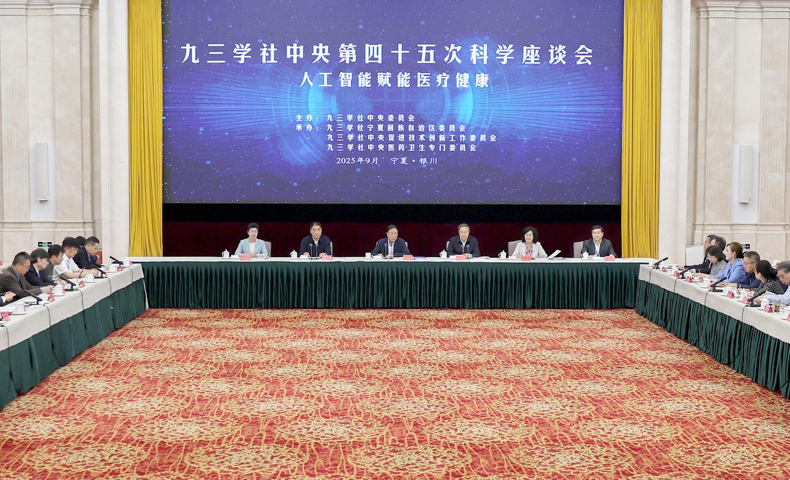 9月22日至24日,九三学社中央第四十五次科学座谈会在银川举行,与会专家学者围绕“人工智能赋能医疗健康”主题深度交流、聚智献策。全国人大常委会副委员长、九三学社中央主席、中国科学院院士武维华出席会议并讲话,自治区党委书记、人大常委会主任李邑飞出席并致辞,九三学社中央副主席刘政奎主持。中国工程院院士董家鸿,自治区党委常委、统战部部长窦敬丽,自治区政协副主席、九三学社宁夏区委主委马秀珍出席。