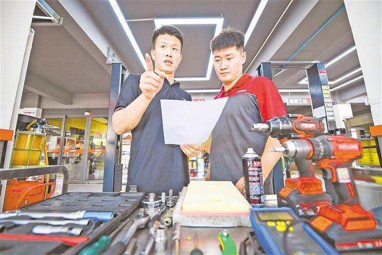 靳富云还主动承担起店里的宣传工作。他紧跟时代潮流,从零开始学习视频拍摄和直播。每天下班后,他会在车间里架好支架,对着手机镜头讲解“车辆保养小知识”。在直播间里,面对网友五花八门的用车问题,他都仔细解答。一次,靳富云直播到深夜,一位粉丝留言称车在半路抛锚,他立刻询问地址,带着工具包赶去帮忙修理,修好后分文未取,只说:“出门在外,谁都会遇上难处。”此事在网上传开后,不少人专程到他们的店里修车。如今,靳富云和团队凭借真诚的服务、透明的价格、过硬的技术和周到的服务,门店口碑越来越好,回头客越来越多。