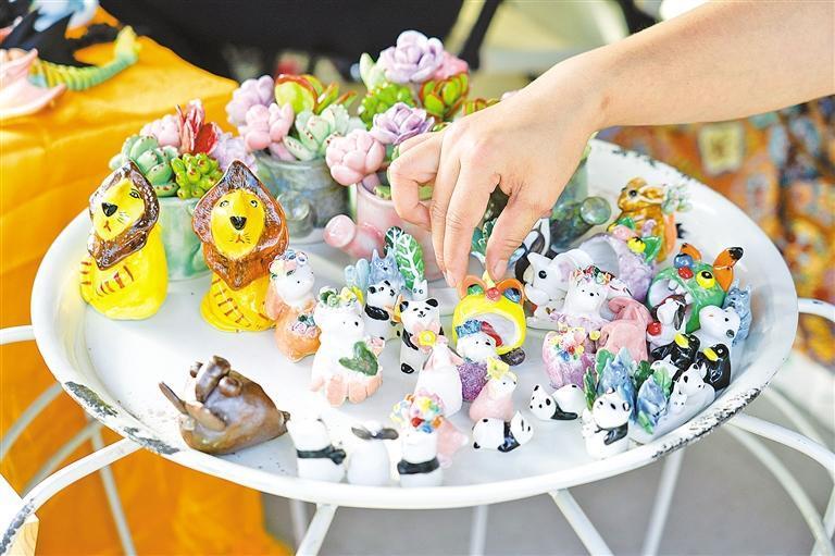 这个小小的创意如星星之火,迅速在祥安巷蔓延。随着越来越多的人加入,为不影响社区住户通行、停车,场地挪到了隔壁更宽阔的米欧家居店门前。钩针编织、串珠饰品、手绘扇面、皮具制作……各式摊位如雨后春笋般涌现。渐渐地,这里形成了不成文的约定:只要天气允许,每周六下午,摊主们便会默契相聚,且只有纯手工的作品才会得到集市的认可。