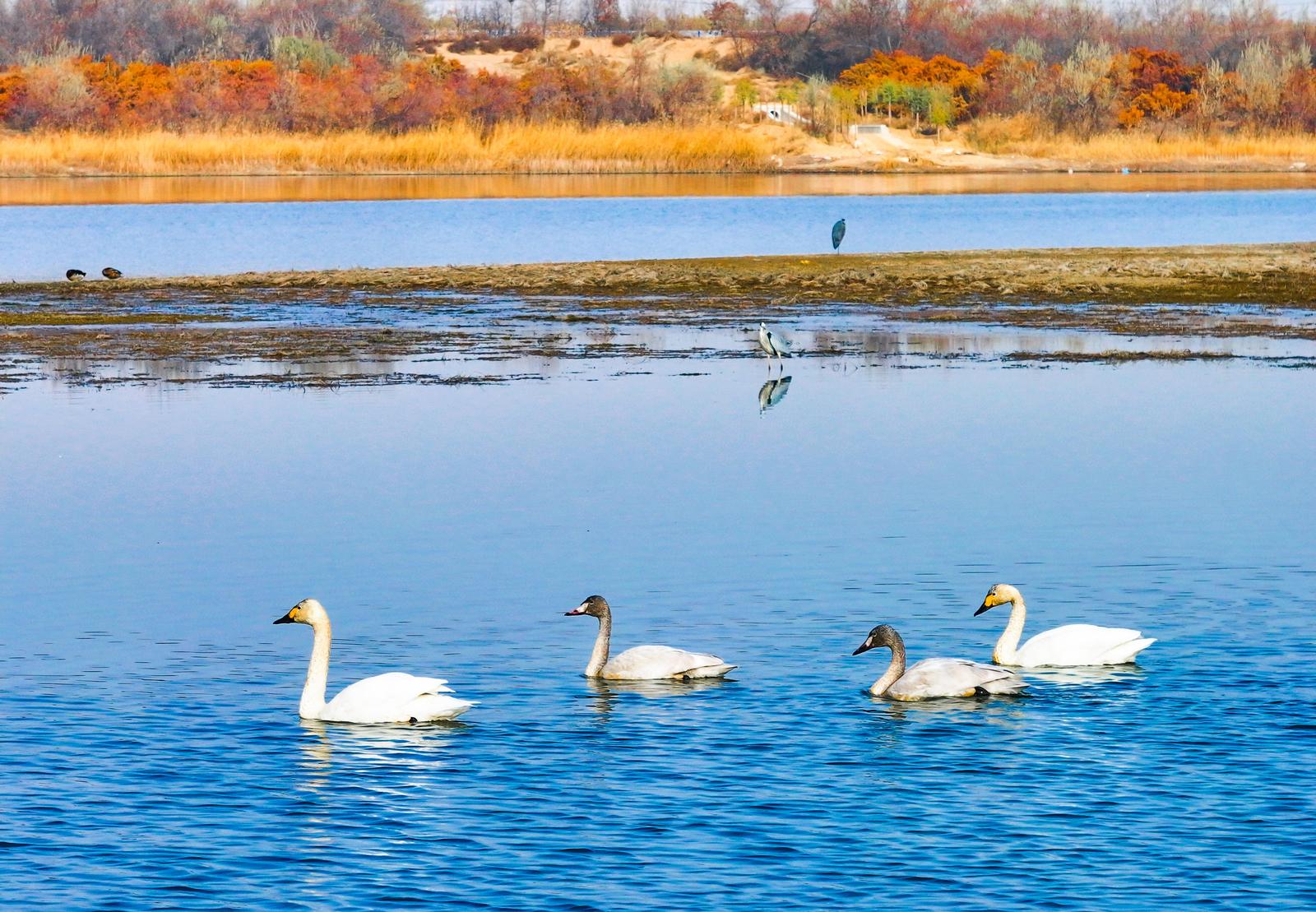 11月15日,永宁县西部水系中,一群小天鹅自在畅游,勾勒出一幅生态优美的动人画卷。近年来,银川市通过退耕还湿、水系连通、生态补水等举措,累计恢复湿地面积4万亩,全市湿地总面积达79万亩,拥有200余处自然湖泊和沼泽湿地。这些举措为候鸟提供了理想的栖息环境,银川也成为候鸟迁徙的重要驿站。记者 马楠 摄