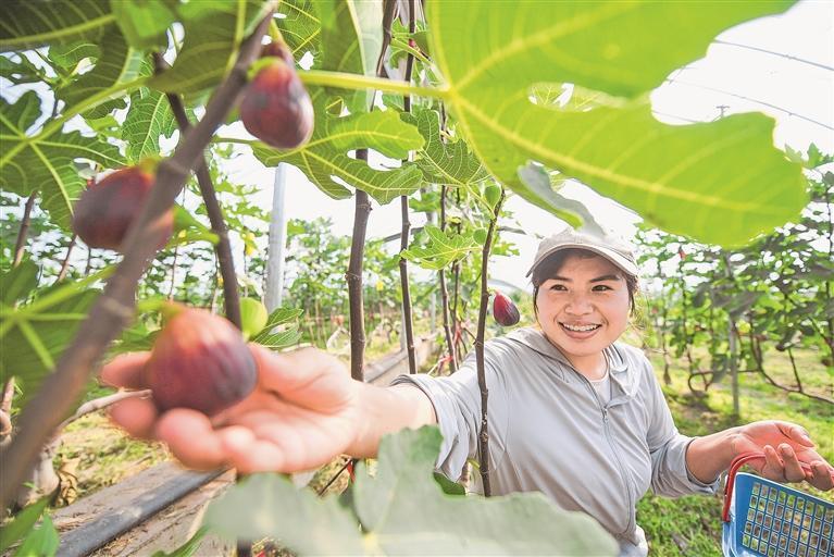 银川市兴庆区月牙湖乡设施温棚内无花果挂满枝头。