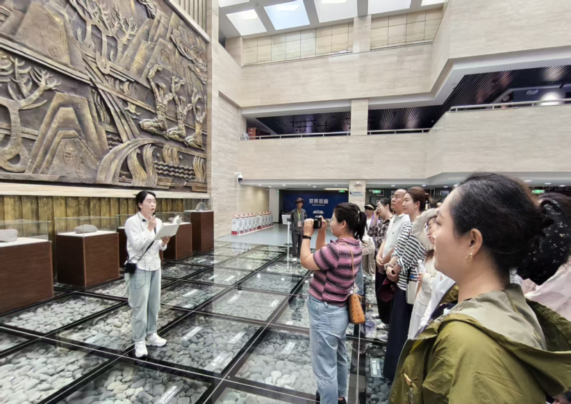 “这些岩画距今已有接近1万年历史,上面的狩猎场景反映了远古先民的生产生活。”在贺兰山岩画景区和宁夏博物馆《宁夏岩画》展厅,思政课教师刘春燕、华彩霞为学生讲解“中华文明多元一体”的深刻内涵。学校与宁夏博物馆建立深度合作关系,共建思政课实践教学基地和教师暑期研修基地,教师们既参与担任志愿讲解员,又带领学生开展场馆里的思政课,将博物馆的常设展厅转化为“行走的思政课堂”。