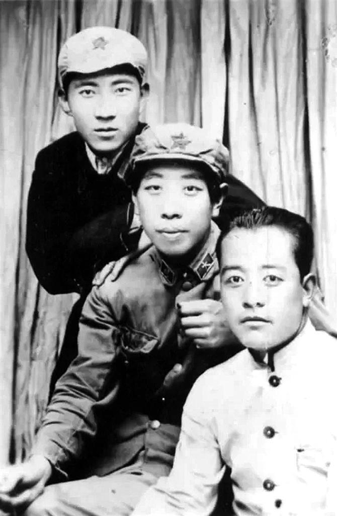 高波(中)在陕甘宁边区与战友的合影。