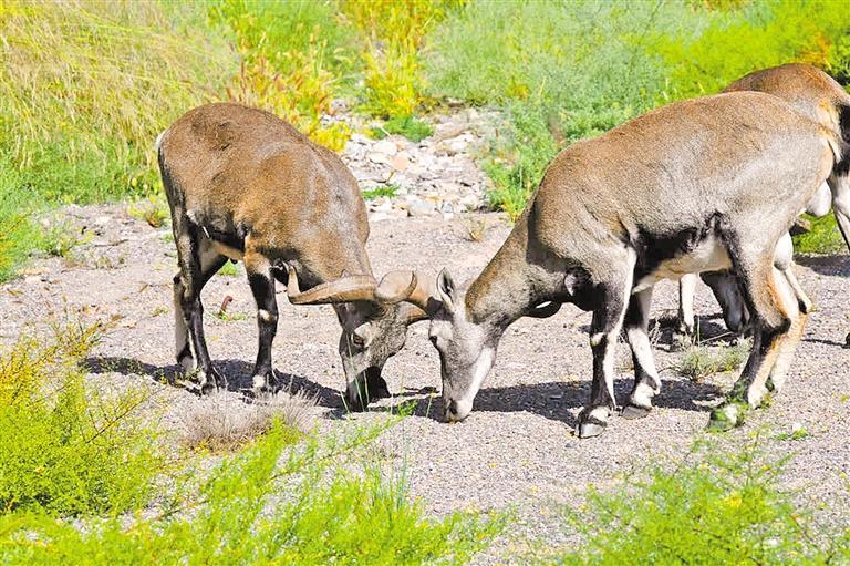年轻公羊总带着莽撞劲,后蹄刨起土尘,低头冲刺。年长公羊稳立不动,只在双角即将撞击的瞬间受力侧头。一时间,难分伯仲。