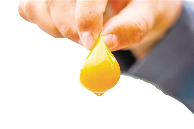 散养的土鸡蛋品质好,蛋黄可以被轻松拎起。