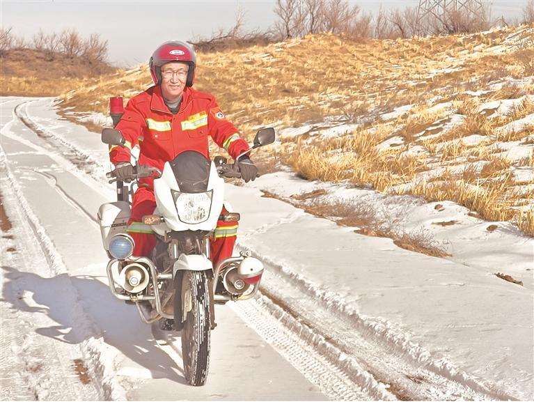 2025年12月5日,天际线刚泛起一丝鱼肚白,宁夏灵武白芨滩国家级自然保护区管理局东湾护林点的小屋里,灯亮了。59岁的护林员吴敬忠洗漱完毕,将热水灌进有些年头的水壶里,带上剪刀、锯子和铁锹巡山“三件套”,套上橙红色的防火服,推门踏入寒冷的晨风中。