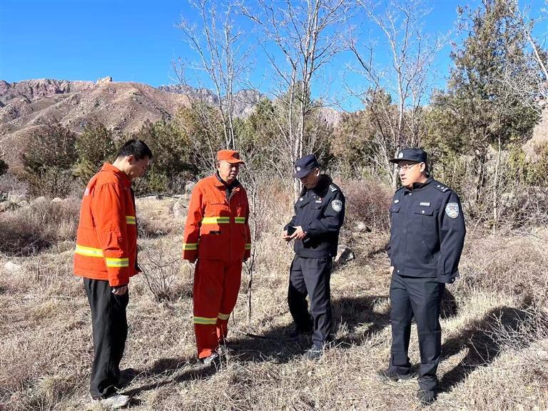 11月17日,银川市公安局西夏区分局森林和草原派出所民警带领防火员一起巡逻。 受访单位供图