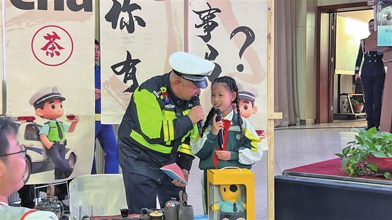 “茶烟袅袅润行藏,路稳心平赴远方,莫效贪杯争捷足,平安是盏醉清茗。”在“我有茶,你有故事吗”互动环节,展开了一场诗词互动。银川交警鸿胜警官以诗会友,与代驾司机、外卖骑手、小学生围炉煮茶,将含有遵守交通规则寓意的诗词赠予他们,传递文明。代驾司机分享了自己从工作中感受到的交通安全的重要性,以及代驾工作为群众带来一份平安的意义;外卖骑手谈了佩戴头盔的重要性,从与交警斗智斗勇冒险违法到主动佩戴好安全头盔,离不开交警的耐心叮嘱;小学生则讲述了自己眼中的交警叔叔、阿姨,寒来暑往的“护学岗”上他们从未缺席。