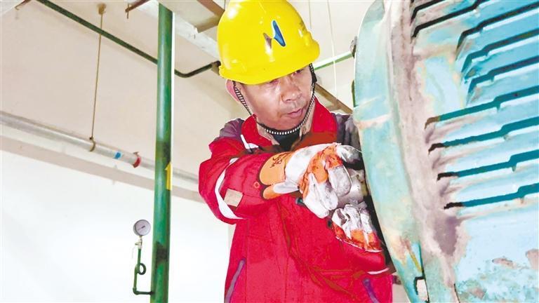 宁夏西部热电有限公司工作人员在维修保养设备。