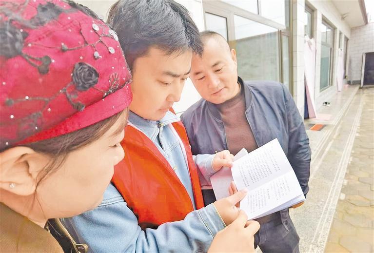 同心县豫海镇幸福社区工作人员开展《住房租赁条例》宣传。
