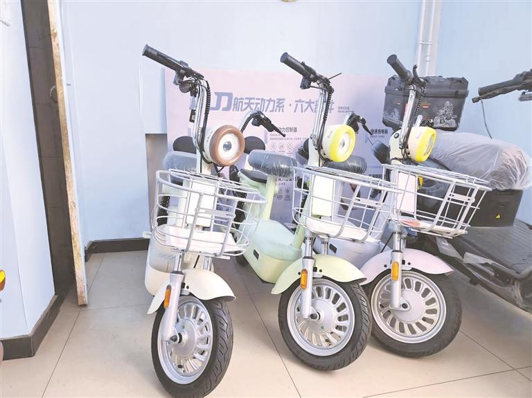 多家店铺内新国标电动自行车还没有大量进货,电动摩托车比例更高。