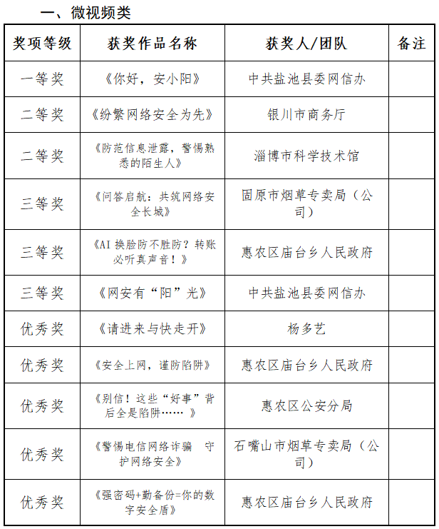 附件:2025年宁夏网络安全宣传周新媒体作品线上征集活动获奖名单