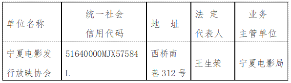 自公告发布之日起,宁夏电影发行放映协会的法人登记证书、公章、标识牌等全部作废,任何单位或个人不得再以该社会组织的名义开展活动。