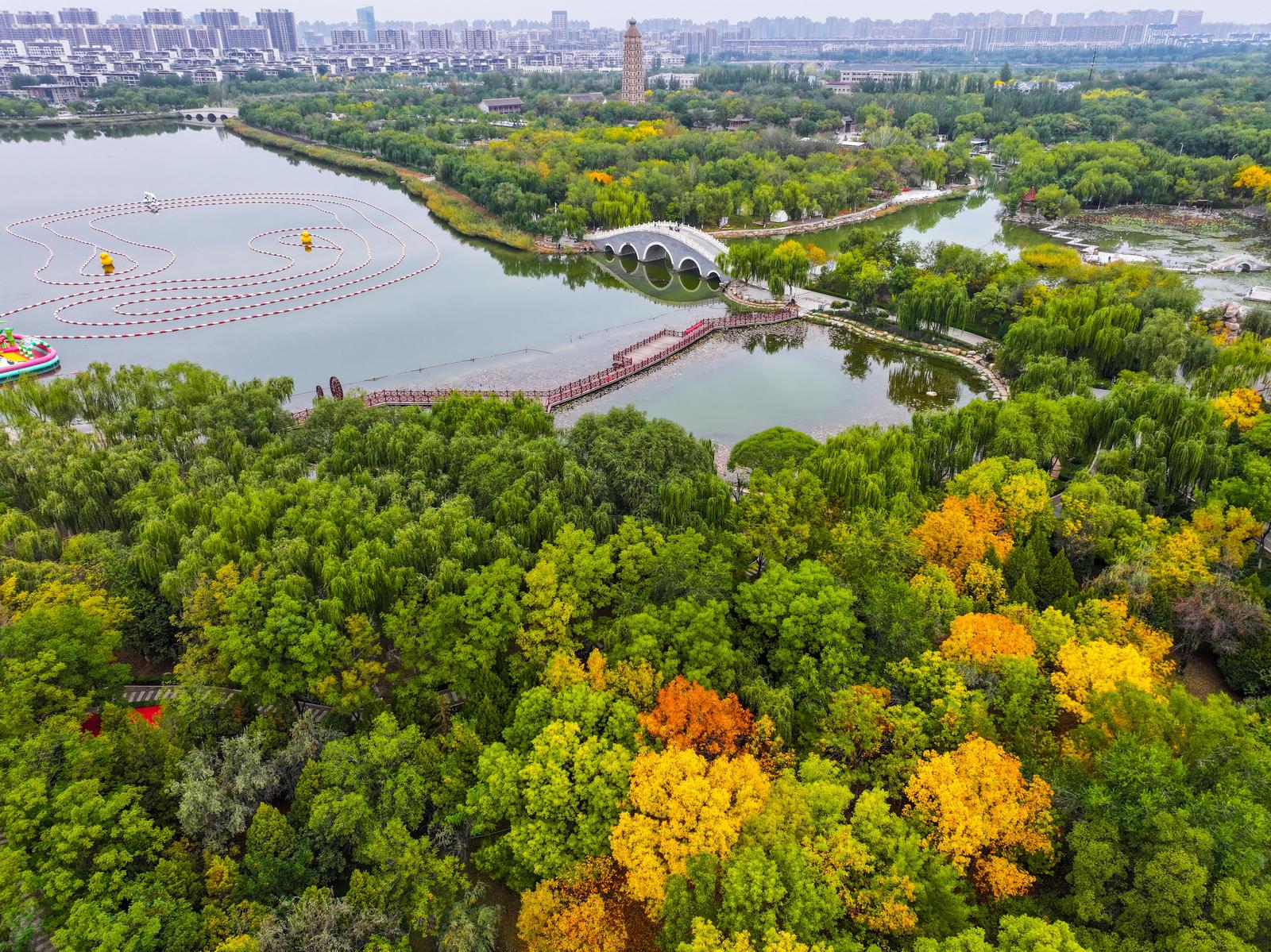 云端瞰秋!湖城秋日梦幻图鉴,海宝公园的美藏不住了