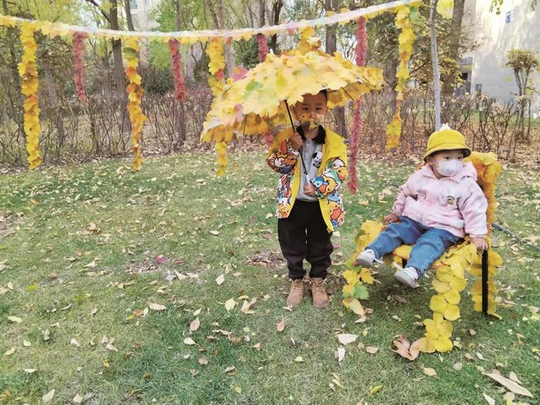 银杏叶拼贴的落叶伞、树叶串成的垂帘、造型别致的落叶座椅……11月20日,银川市金凤区世茂倾城小区的居民们惊喜地发现,家门口的落叶“变废为美”,成了艺术景观。据了解,这些充满巧思的布景,并非来自专业团队,而是出自物业保洁人员之手。宁夏日报报业集团全媒体记者 陶涛 摄)