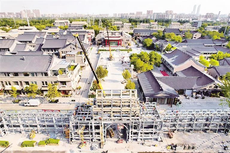 2023年9月5日,银川文化城特色商业街区整体提升改造项目现场建设正酣。记者 马楠 摄