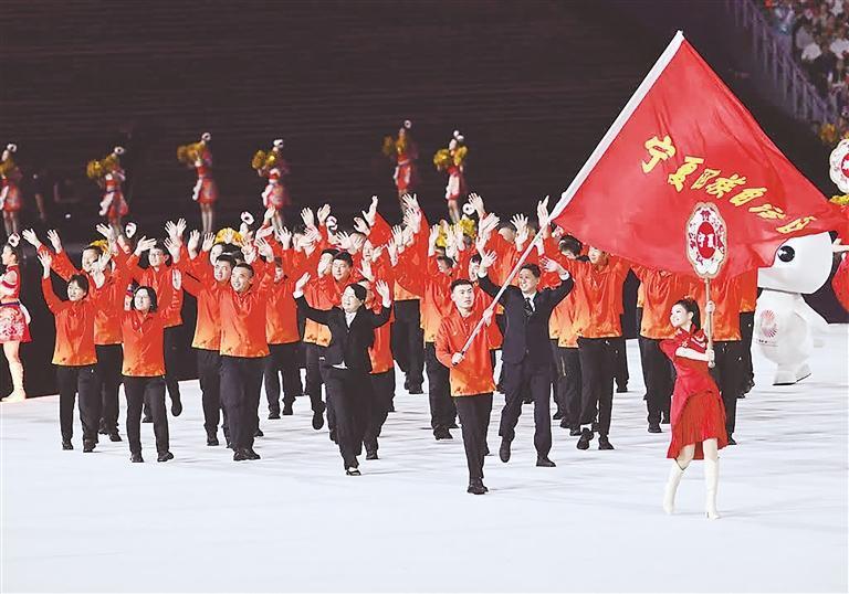 开幕式上,宁夏代表团步入广东奥体中心,代表团成员接受来自全场的欢呼。运动员们向全场观众挥手致意,自信坚毅的眼神与观众期待的目光交汇。他们的步伐,踏出塞上江南的沉稳,也带着黄河奔流的激情。