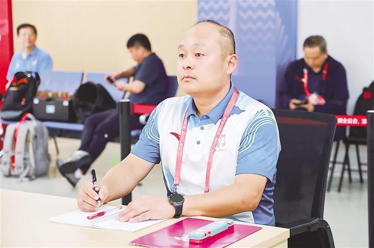 宁夏射击裁判员王晓明在全运会射击项目中执裁。