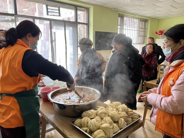 11月27日,在灵武市育才街社区平价食堂,居民准备用餐。近年来,灵武市大力推进社区平价食堂(老年饭桌)建设和精细化服务。目前,灵武市有社区平价食堂12家、乡镇老饭桌65个。宁夏日报报业集团全媒体记者 黄英 摄