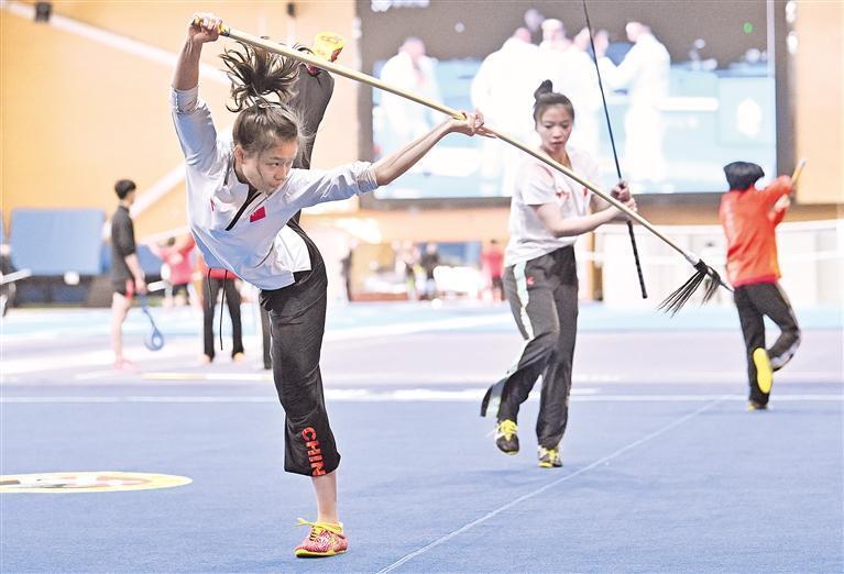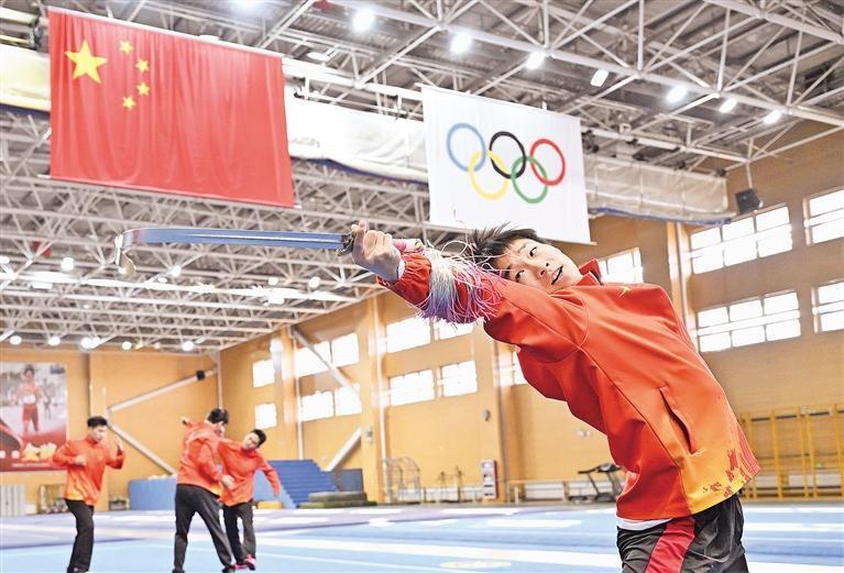 宁夏武术队17岁的运动员方馨甜(左一)与队友们在训练中,对每一个动作都“精雕细琢”。