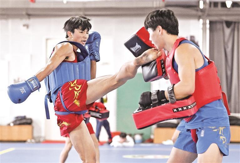 散打馆内,17名队员正为2025年全国武术散打冠军赛做冲刺备战,其中4名主力队员被寄予厚望。队伍坚持“精兵路线”,不盲目扩大规模,并通过先进的生理生化指标监控,实时掌握运动员的状态,并实施分阶段、差异化的抗压训练与实战模拟,显著提升了训练的针对性和运动员的临场竞技能力。