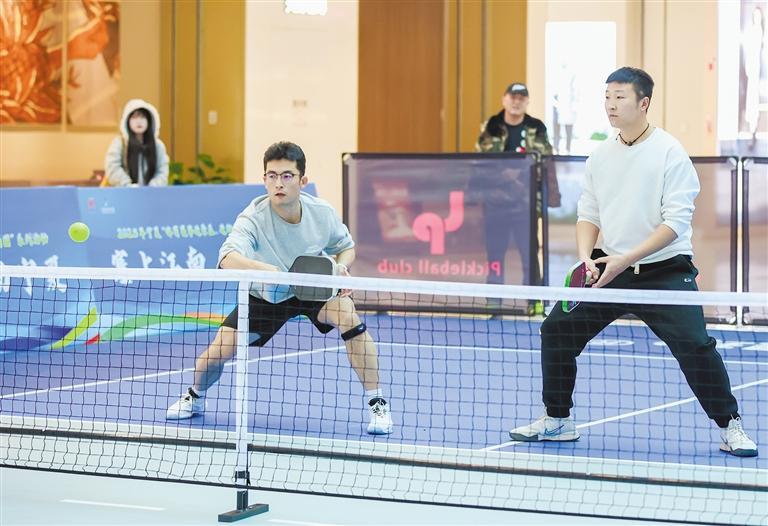 12月13日,选手在进行匹克球比赛。当天,2025宁夏“体育赛事进景区、进街区、进商圈”系列活动暨宁夏新兴体育项目系列展演赛在银川市金凤区悠阅城商圈拉开序幕。年关将至,银川市多家商场打造“商业+体育”主题消费场景,“边逛街边运动”成为一种消费新风尚。宁夏日报报业集团全媒体记者 高晓刚 摄