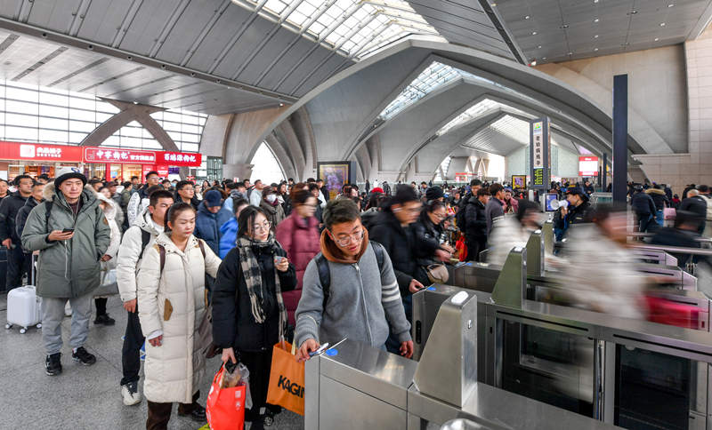 1月1日,银川火车站,乘坐D4047次列车的旅客正在检票进站。当日,银川火车站迎来客流高峰。 宁夏日报报业集团全媒体记者 王晓龙 白茹 摄