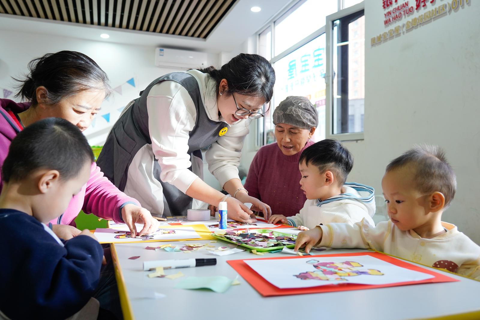 1月8日上午,在银川市金凤区黄河东路街道金地花园社区“凤城宝宝屋”,育儿老师带领小朋友做手工。作为中央财政支持的普惠托育示范项目,黄河东路街道“凤城宝宝屋”已在湖畔嘉苑西区社区、金地花园社区、新苑社区落地,构建起覆盖辖区的“15分钟就近托育婴幼儿照护服务圈”,为0—3岁婴幼儿家庭解决照护难题。宝宝屋的照护人员均持有育婴师或幼儿教师资格证,经系统培训后上岗。他们不仅提供基础生活照料,还通过游戏互动、绘本阅读等特色活动,促进婴幼儿综合能力发展。宝宝屋采用“政府补一点、机构让一点、家庭付一点”的三方分担模式,提供亲子早教课程、半日托、临时托等服务,按次收费,满足不同家庭需求。自去年3月试运营以来,3家社区宝宝屋日均服务婴幼儿15人次以上。 宁夏日报报业集团全媒体见习记者 乔新宇 摄