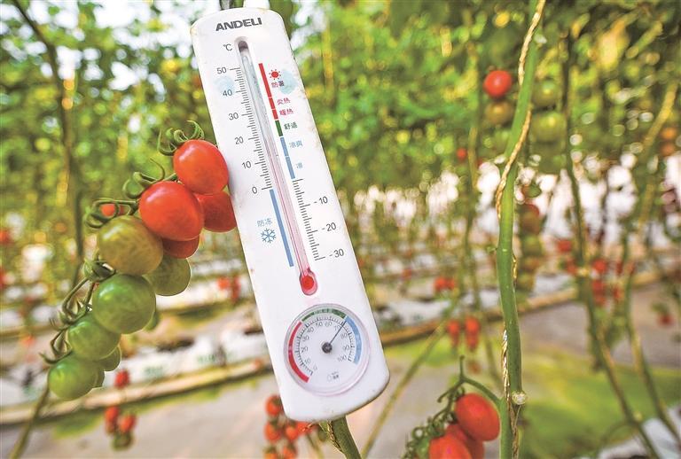 “我们给冬季小番茄的生长按下了‘加速键’,啥时上市由我们说了算。”贺兰县习岗镇新平园区江禾丰业农业专业合作社负责人王议闯自信满满。2025年12月30日上午,室外温度2℃,车窗上也已经结了霜,记者走进贺兰县新平园区的高标准温棚,一人多高的番茄植株整齐排列,湿润的空气扑面而来。