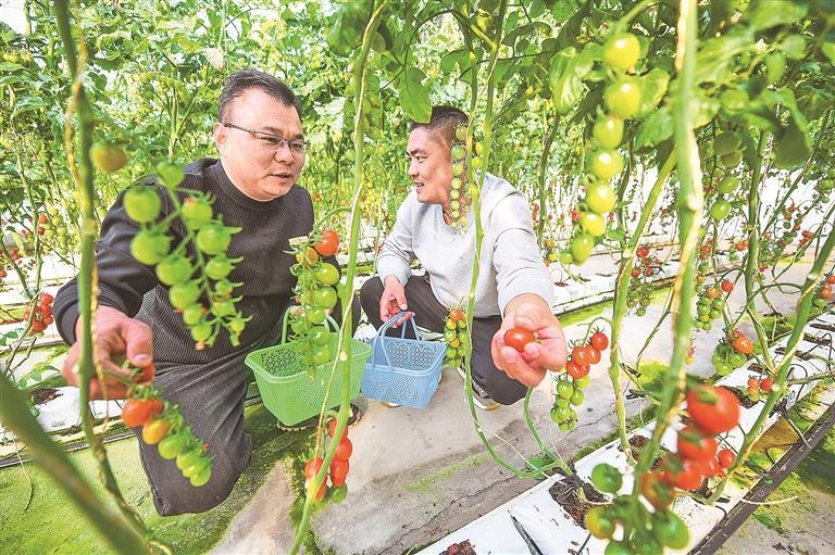王议闯采摘小番茄。