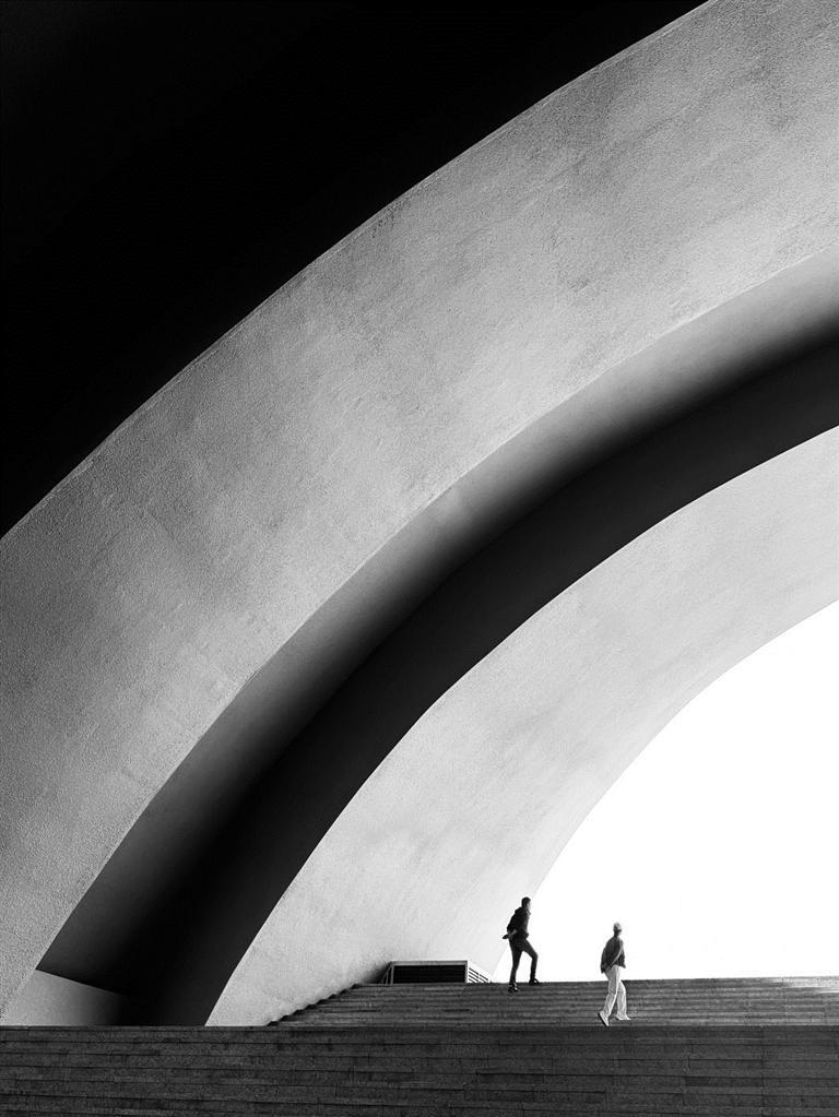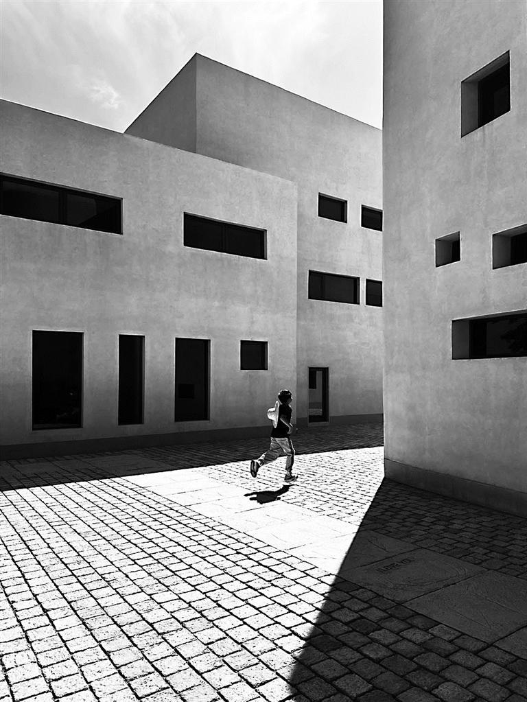 黑白影调不仅是视觉的减法,更是情感的加法:去除色彩干扰后,观者得以专注于光影雕刻的肌理与时空交错的纵深感。画面通过黄金分割与留白构图实现视觉平衡,强化了城市中每一栋建筑独有的秩序感,而零星出现的人物则为冰冷的建筑注入了人文温度。这种“去物质化”的表达,让建筑成为承载哲学思考的载体——在极简美学中,理性结构与感性诗意达成了微妙共振,邀请观者在黑白灰的层次间,重新发现城市空间的灵魂与记忆。(记者 季正)