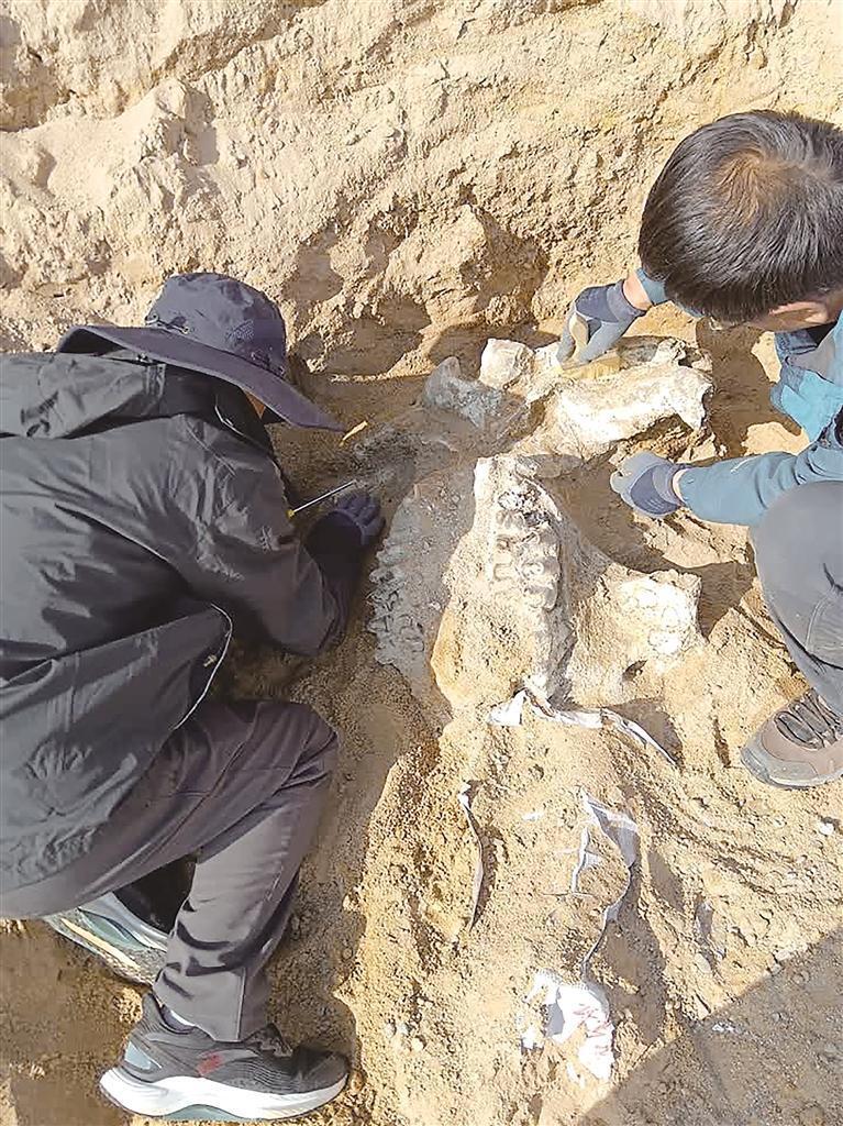 记者11月28日从自治区地质博物馆获悉,宁夏古生物化石与地质遗迹科技创新团队日前在吴忠市发掘出一具保存较为完整的四棱齿象化石,初步鉴定距今约1100万年至900万年,标志着宁夏在古生物化石调查领域获重大进展。
