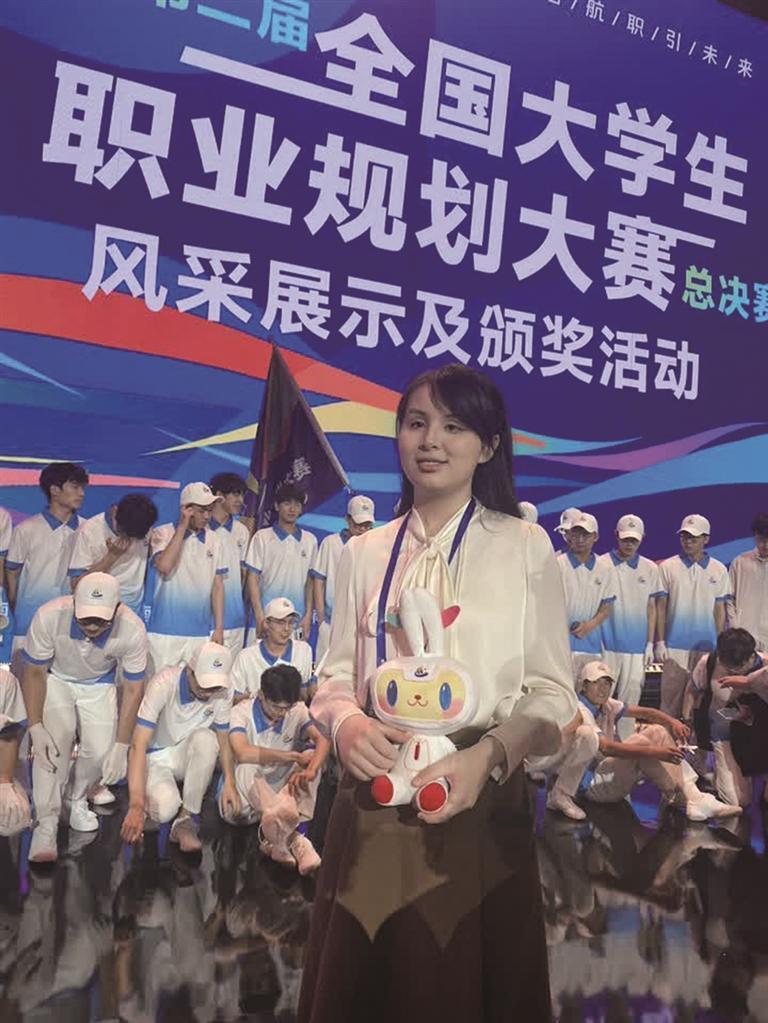 马奕菲在第二届全国大学生职业规划大赛总决赛颁奖现场。