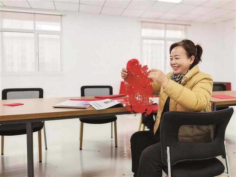 “刚学剪纸的时候,别说刻刀,我连剪子都拿不稳。徐老师手把手地教我,现在按照图样,我已经能和老姐妹们一块儿完成4米长的剪纸(剪绸)作品了。”张玉勤说。