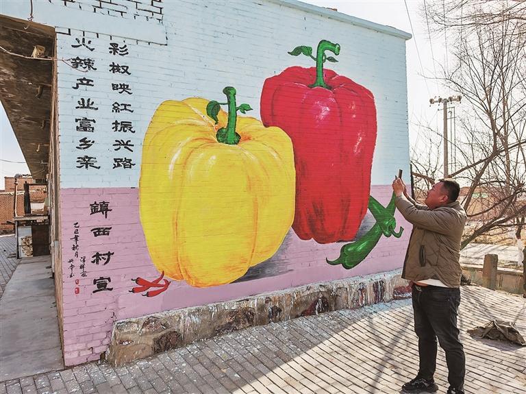 从今年10月至今,镇西村已完成500多平方米墙绘作品,王泽祥喜欢沿着村道散步,一边看一边笑,一边笑一边想:“这几面墙,再画上一组彩椒卖到东南亚的故事才美!”