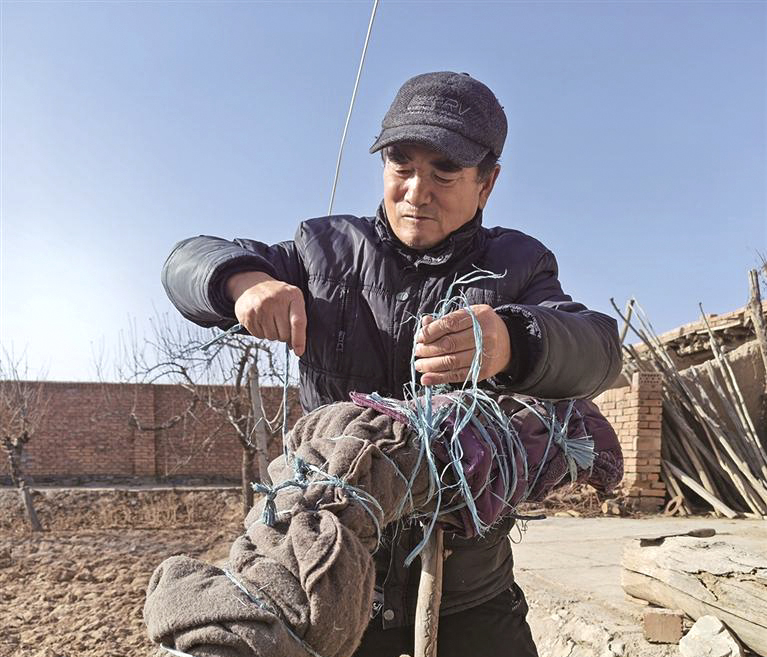 王洪喜捆绑葡萄藤。